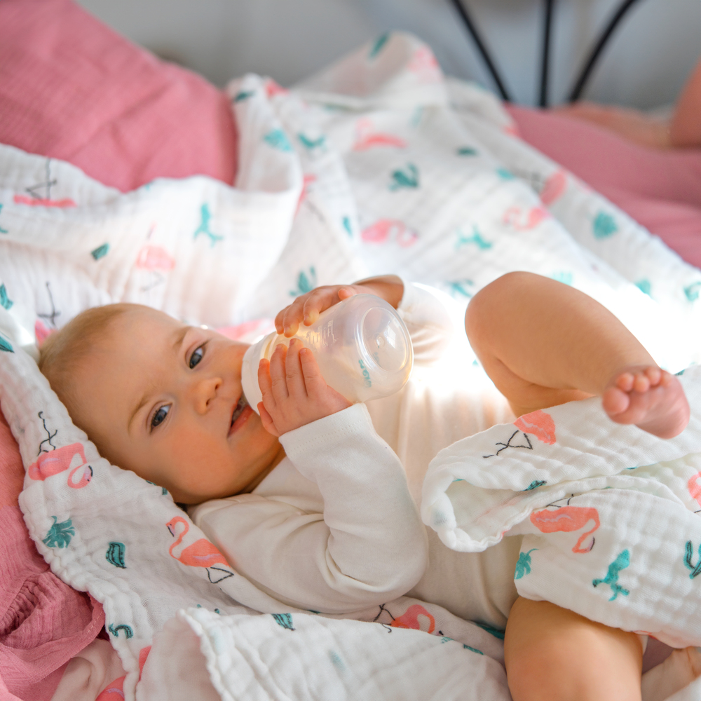 AKUKU A0686 Kocyk / otulacz / ręcznik muślinowy 110×105 cm Flamingi
