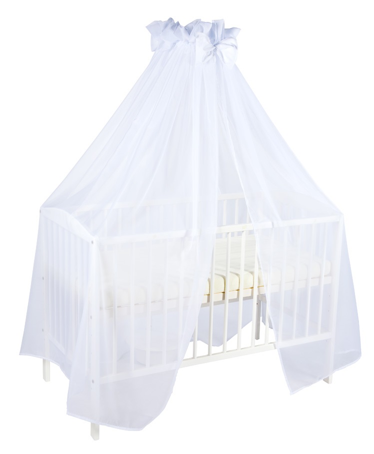 ALBERO MIO Moskitiera woalowa w kolorze białym to lekka i przewiewna osłona łóżeczka, zapewniająca dziecku spokojny sen i ochronę przed owadami. Wykonana z miękkiego, przezroczystego woalu 100% poliester, nie ogranicza dopływu światła ani powietrza, a jednocześnie pełni dekoracyjną funkcję w pokoju dziecka. Wymiary 200 x 400 cm pozwalają na pełne osłonięcie łóżeczka. Produkt dostępny także w kolorze ecru.