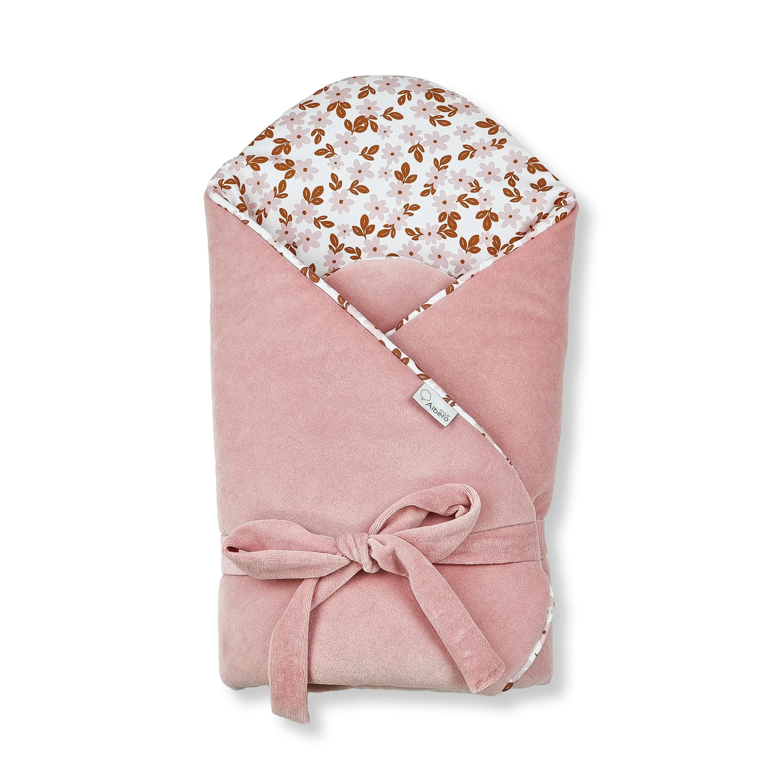 ALBERO MIO Rożek niemowlęcy CP1 Retro kwiatki to rożek wykonany z satyny bawełnianej z nadrukiem kwiatków oraz z miękkiego weluru bawełnianego. Rożek ma wszyte antyalergiczne wypełnienie silikonowe, które izoluje ciepło i przepuszcza powietrze, nie posiada dodatkowego usztywnienia, dzięki czemu utrzymuje naturalną i wygodną pozycję noworodka. Wiązany na kokardę, pozwala na indywidualne dopasowanie rozmiaru do dziecka. Wyprodukowano w Polsce, tkaniny posiadają certyfikat Oeko-Tex. Rozmiar po rozłożeniu 75×75 cm, tkaniny 100% bawełna, wypełnienie 100% poliester silikonowany. Produkt należy stosować pod nadzorem osoby dorosłej.