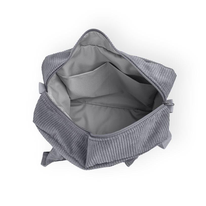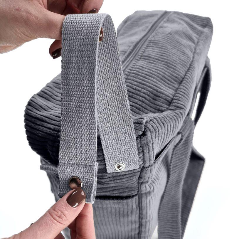 Torba do wózka **ALBERO MIO J001 szara** to elegancki i funkcjonalny dodatek dla rodziców, łączący styl z praktycznością. Wykonana z wysokiej jakości sztruksowej tkaniny 100% bawełnianej o prążkowanej strukturze, jest miękka, trwała i odporna na zużycie, a wnętrze wyłożone wodoodporną podszewką chroni przechowywane przedmioty.