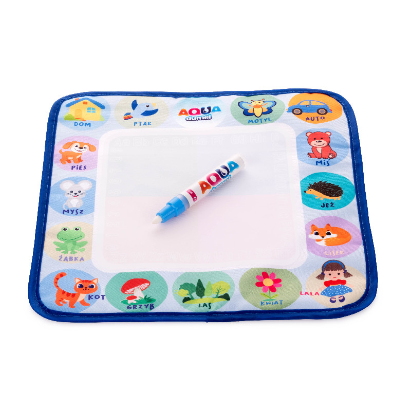 Baw się kreatywnie w domu i w podróży dzięki kompaktowej macie do rysowania wodą, która sprawdzi się w każdym miejscu. Mata podzielona jest na cztery kolorowe pola, co pozwala tworzyć barwne obrazki, a do zestawu dołączony jest specjalny mazak, który po napełnieniu wodą umożliwia rysowanie po macie. Kiedy mata wyschnie, wcześniej namalowane obrazki znikają jak za dotknięciem czarodziejskiej różdżki. Produkt przeznaczony jest dla dzieci od 18. miesiąca życia, a jej podręczny rozmiar ok. 30 × 30 cm sprawia, że jest idealny do zabawy w domu i w podróży.