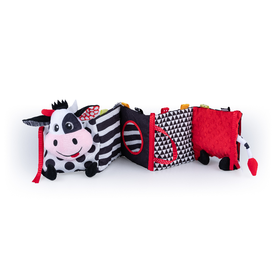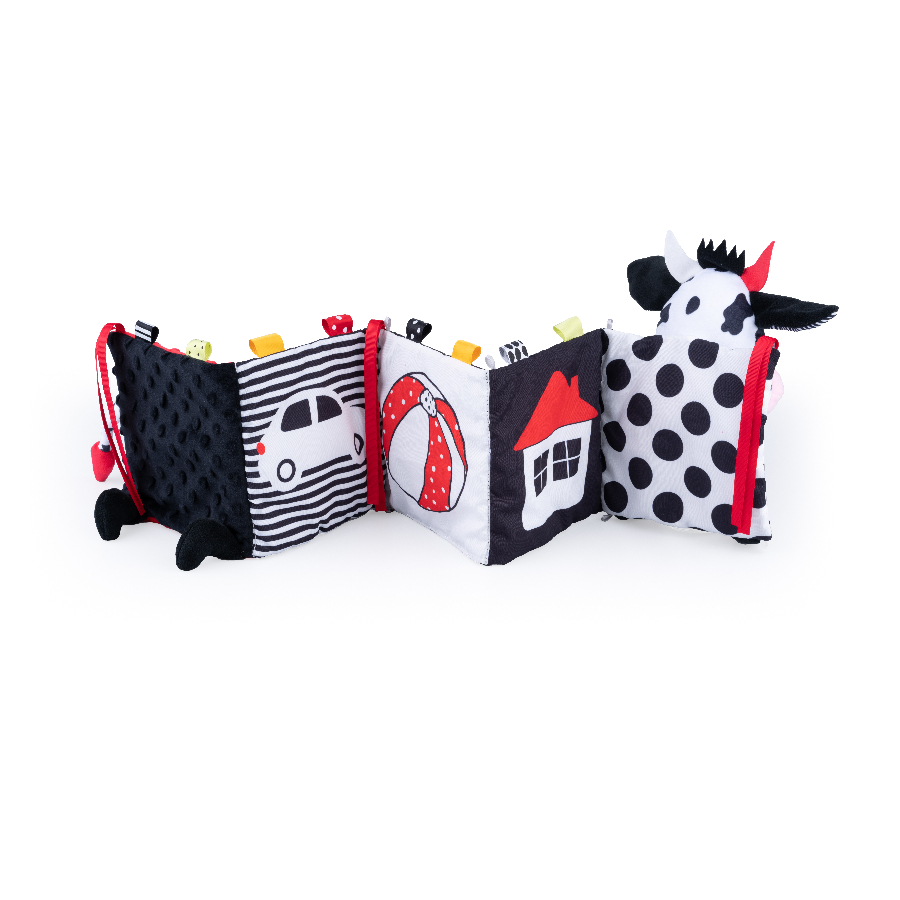 Książeczka-harmonijka Krówka marki Balibazoo to pierwsza książeczka bobasa, która łączy zabawę z rozwijaniem zmysłów dziecka. Dzięki miękkim materiałom, różnorodnym fakturom i interaktywnym elementom maluch poznaje świat w bezpieczny i przyjemny sposób.