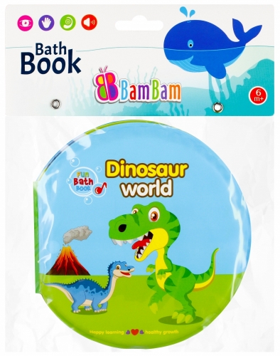 Książeczka do kąpieli Bam Bam 432479 „Dino” to wodoodporna zabawka edukacyjna dla dzieci od 6 miesięcy. Dzięki kolorowym ilustracjom dinozaurów i piszczkowi w środku rozwija zmysły wzroku, słuchu i dotyku oraz wspiera zdolności manualne. Wymiary produktu to 13 x 14 cm, nie wymaga baterii. Pakowana w woreczek z zawieszką.