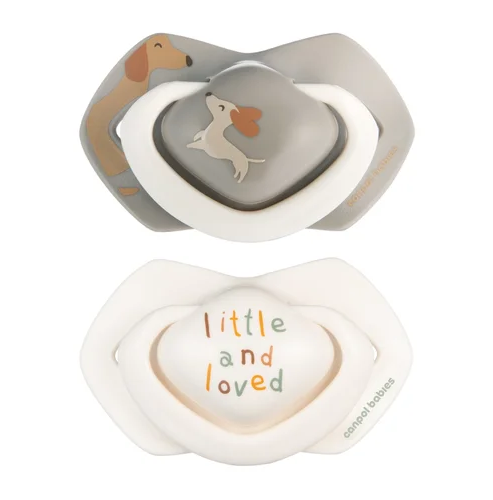 CANPOL 22/671 Smoczek silikonowy symetryczny Light Touch DOGS 6–18 miesięcy to zestaw dwóch smoczków uspokajających zaprojektowanych z myślą o komforcie i bezpieczeństwie dzieci w wieku od 6 do 18 miesięcy. Model Light Touch wyróżnia się wyjątkowo lekką konstrukcją, która nie obciąża zgryzu i sprzyja prawidłowemu rozwojowi jamy ustnej, co potwierdzają opinie specjalistów. Symetryczny kształt smoczka zapewnia idealne dopasowanie w buzi dziecka niezależnie od sposobu jego ułożenia, a fizjologiczna forma wspiera naturalny odruch ssania.