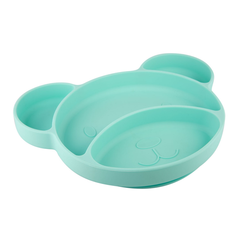 CANPOL 51/401 to silikonowy trójdzielny talerzyk z przyssawką MIŚ w kolorze turkusowym, przeznaczony dla dzieci od 6. miesiąca życia. Talerzyk ma cztery przegródki ułatwiające porcjowanie i sortowanie różnych składników posiłku, co wspiera samodzielne jedzenie, także metodą BLW. Antypoślizgowa przyssawka zapobiega przesuwaniu się talerza po stole, wywróceniu lub zrzuceniu na podłogę. Wykonany jest w 100% z bezpiecznego silikonu przeznaczonego do kontaktu z żywnością, elastyczny, trwały i nietłukący się. Można go myć w zmywarce i podgrzewać w mikrofalówce. Produkt nie zawiera BPA, PVC ani ftalanów i posiada odpowiednie certyfikaty bezpieczeństwa. Talerzyk jest dostępny w trzech kolorach.