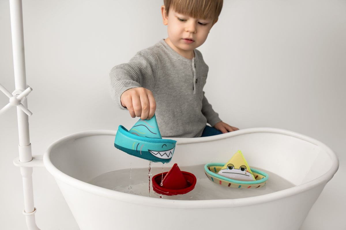 Łódki do kąpieli HENCZ 537 to zestaw trzech pływających łódek – żabki, kraba i rekina – wykonanych z szybkoschnącego neoprenu, przeznaczonych dla dzieci od 6 miesiąca życia. Zabawka jest przelewowa, co pozwala na przelewanie wody z jednej łódki do drugiej, a odwracanie ich odsłania nowe obrazki zwierzątek z różnymi emocjami, wspierając naukę rozpoznawania uczuć. Łódki są lekkie, miękkie i bezpieczne, a otwory na „żaglach” dwóch większych łódek umożliwiają efekt tryskającej wody, co zwiększa atrakcyjność zabawy. Produkt pochodzi z Polski.