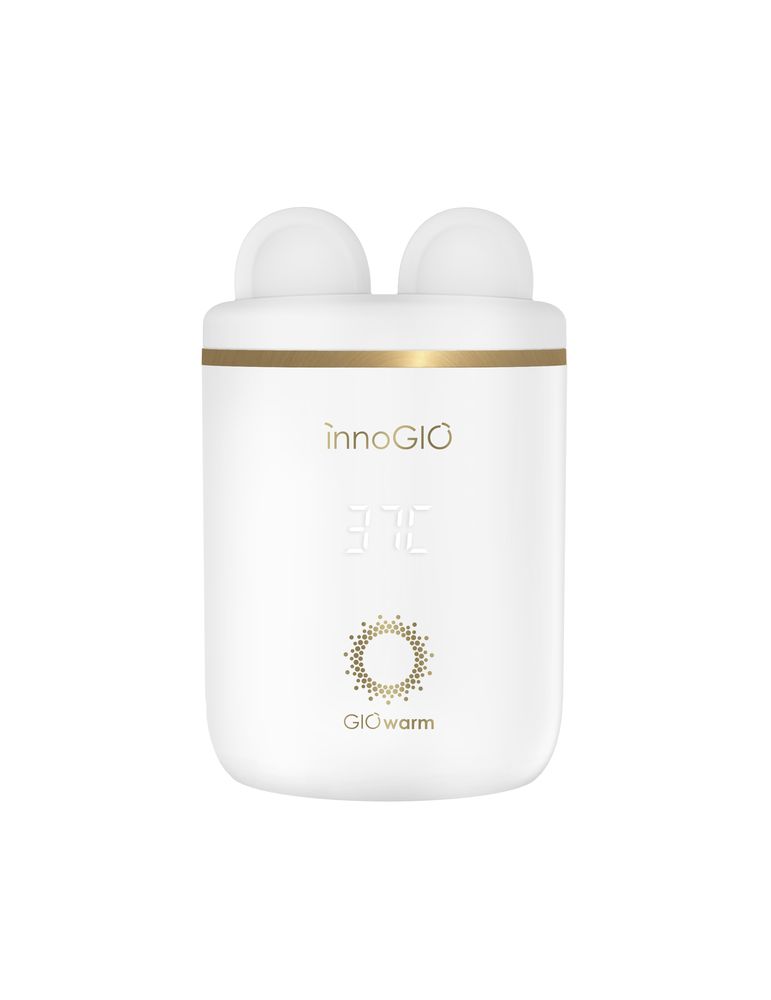 INNOGIO GIO-370 GIOwarm to przenośny podgrzewacz do butelek dla niemowląt, który umożliwia szybkie podgrzanie, rozmrażanie i utrzymanie temperatury pokarmu. Urządzenie jest ciche i bezwodne, korzysta ze sterylnej płyty, która podgrzewa pokarm bez użycia wody. Posiada wbudowany akumulator o pojemności 13 200 mAh, pozwalający na pracę do 12 godzin w trybie podtrzymywania temperatury. Podgrzewacz ładowany jest przez kabel USB i działa w kilku trybach, a dzięki dołączonym adapterom pasuje do butelek większości wiodących marek. Jest lekki, kompaktowy, łatwy do przenoszenia w podróży i łatwy w czyszczeniu, a czytelny wyświetlacz umożliwia dokładną kontrolę czasu i temperatury podgrzewania.
