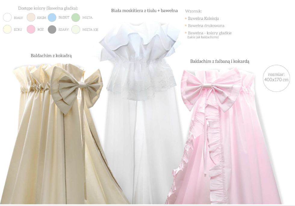 KIECZMERSKI Moskitiera do łóżeczka 170×400 to delikatny tiulowy baldachim, który pięknie ozdobi łóżeczko lub kołyskę, tworząc przytulną i elegancką przestrzeń do snu. Moskitiera chroni dziecko przed owadami oraz izoluje od przeciągu, zapewniając komfortowy i spokojny odpoczynek. Wymiary 170 x 400 cm sprawiają, że doskonale pasuje do większości łóżeczek dziecięcych.