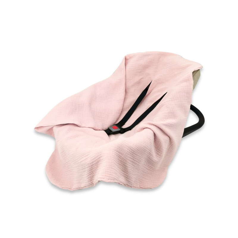 KIECZMERSKI Otulacz muślinowy – kocyk do nosidełka, fotelika kubełkowego 75×75 cm MUŚLIN bawełna 100% pudrowy róż