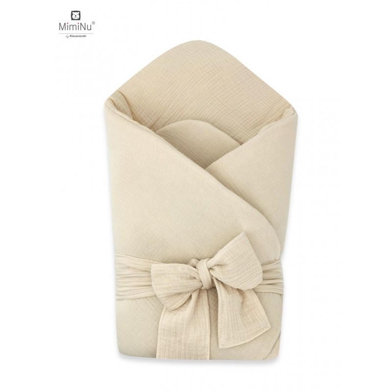 KIECZMERSKI Rożek niemowlęcy z kokardą MUŚLIN BAWEŁNIANY ciepły beż bawełna 100%