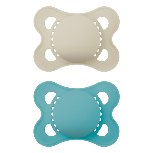 Smoczek uspokajający MAM 850646 Original 2-6 mat boy jest ortodontyczny i dopasowany do jamy ustnej dziecka, wspierając zdrowy rozwój zębów i zgryzu. Wykonany jest z jedwabiście miękkiego silikonu MAM SkinSoft, który łatwo akceptują niemowlęta, zapewniając im poczucie komfortu i znajome doznania podczas ssania. Smoczek posiada zaokrągloną tarczkę z otworami dla przepływu powietrza, co minimalizuje ryzyko podrażnień skóry, a jego symetryczny kształt idealnie dopasowuje się do ust dziecka. Główka smoczka jest łatwa do chwytania, umożliwia proste mocowanie klipsa i zapewnia wygodę użytkowania. Produkt powstał we współpracy z ekspertami medycznymi i stomatologami oraz wykonany jest z materiałów wolnych od BPA i BPS, przyjaznych dla środowiska. Smoczek sprzedawany jest w praktycznym pudełku do sterylizacji i przechowywania, pozwalającym szybko i wygodnie sterylizować go w kuchence mikrofalowej. Badania rynkowe wykazały, że 94% niemowląt akceptuje ten smoczek.