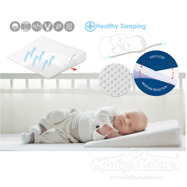 Poduszka AEROKLIN to produkt zaprojektowany z myślą o bezpieczeństwie i komforcie niemowląt, odpowiedni do łóżeczka, wózka czy kołyski. Pokrowiec wykonany jest z jerseyu z dodatkową warstwą oddychającą, która zapewnia prawidłową cyrkulację powietrza i chroni poduszkę przed zabrudzeniem dzięki bezpiecznemu suwakowi. Wypełnienie z pianki poliuretanowej zapewnia prawidłowe ułożenie główki dziecka, a system wentylacyjnych otworów umożliwia swobodny przepływ powietrza. Specjalny kształt poduszki utrzymuje dziecko w bezpiecznej pozycji, zapobiegając zadławieniu podczas ulewania i ułatwiając oddychanie.