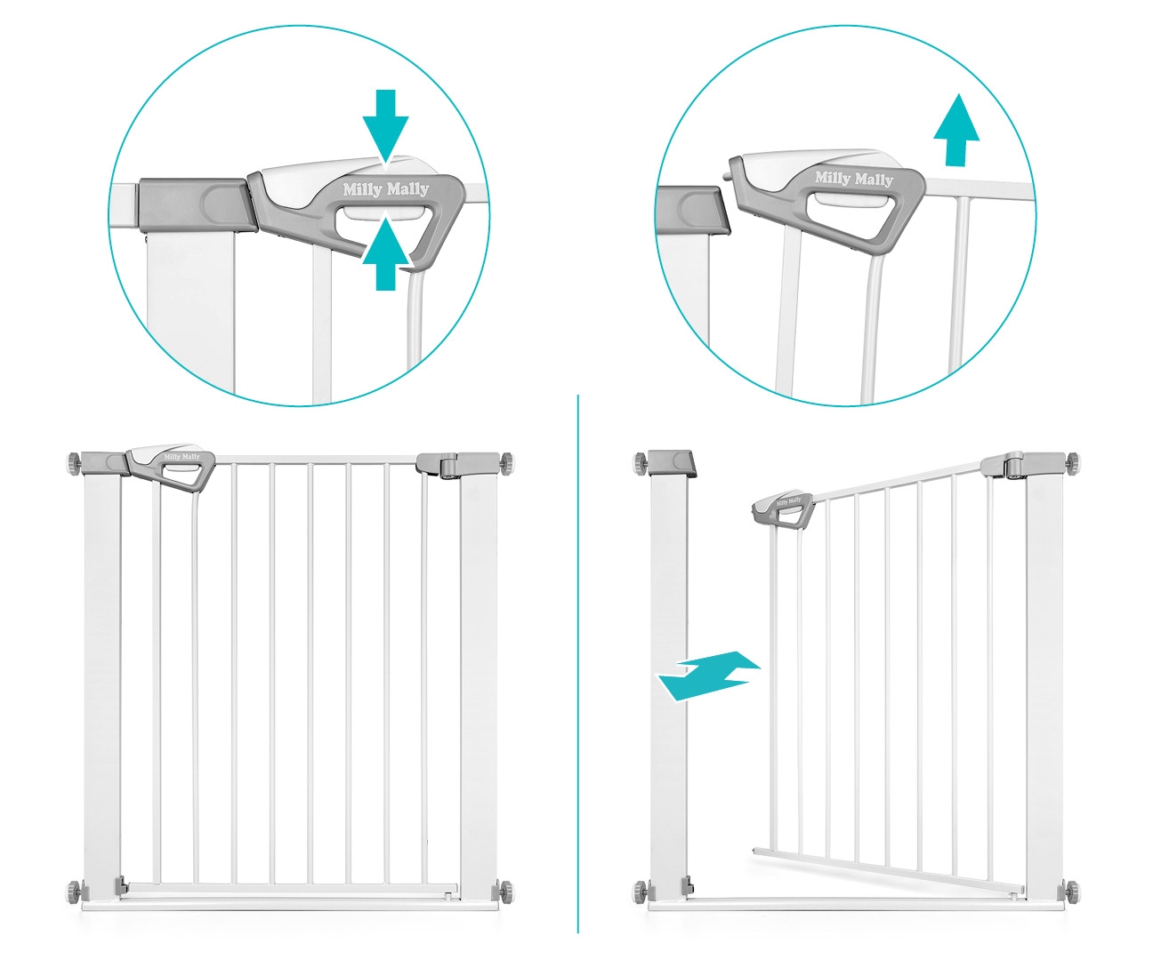 Bramka zabezpieczająca Guardy 83 White od Milly Mally to idealne rozwiązanie do ochrony dzieci przed dostępem do schodów, drzwi i innych niebezpiecznych miejsc w domu. Solidna konstrukcja z metalu i wysokiej jakości plastiku zapewnia stabilność, a podwójny system zabezpieczeń uniemożliwia dziecku samodzielne otwarcie. Bramka otwiera się w obie strony, co gwarantuje pełną wygodę użytkowania niezależnie od układu pomieszczenia. Montaż jest prosty dzięki systemowi rozporowemu, a minimalistyczny, elegancki design w białym kolorze sprawia, że bramka harmonijnie wpasowuje się w każde wnętrze. Guardy 83 przeznaczona jest dla dzieci w wieku 6–24 miesiące, posiada certyfikaty bezpieczeństwa oraz jest zgodna z normą EN 1930:2011, zapewniając spokój i komfort zarówno rodzicom, jak i maluchom.