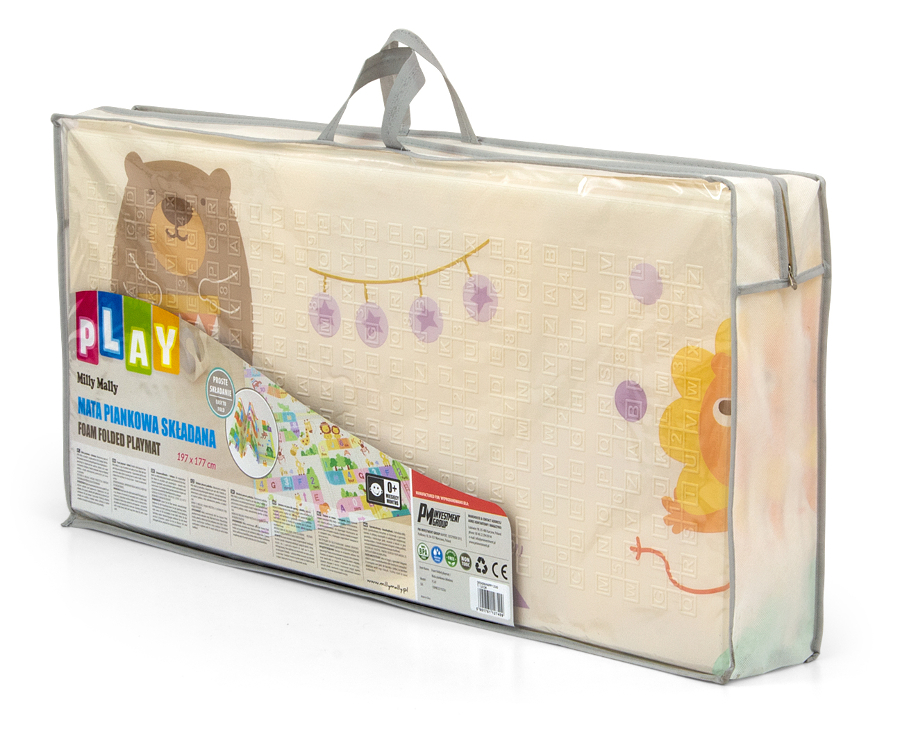 Milly Mally Mata piankowa składana Play Fox T1 to dwustronna mata wykonana z pianki XPE, zapewniająca komfort i bezpieczeństwo dziecka podczas zabawy, raczkowania i nauki chodzenia. Posiada właściwości antypoślizgowe i antyalergiczne, izoluje od chłodnej podłogi, jest wodoodporna i łatwa w czyszczeniu. Ciekawe nadruki sprawiają, że pasuje do każdego pokoju, a duża elastyczność dobrze amortyzuje upadki. Można jej używać także na zewnątrz, a dzięki torbie z suwakiem łatwo ją przenosić.