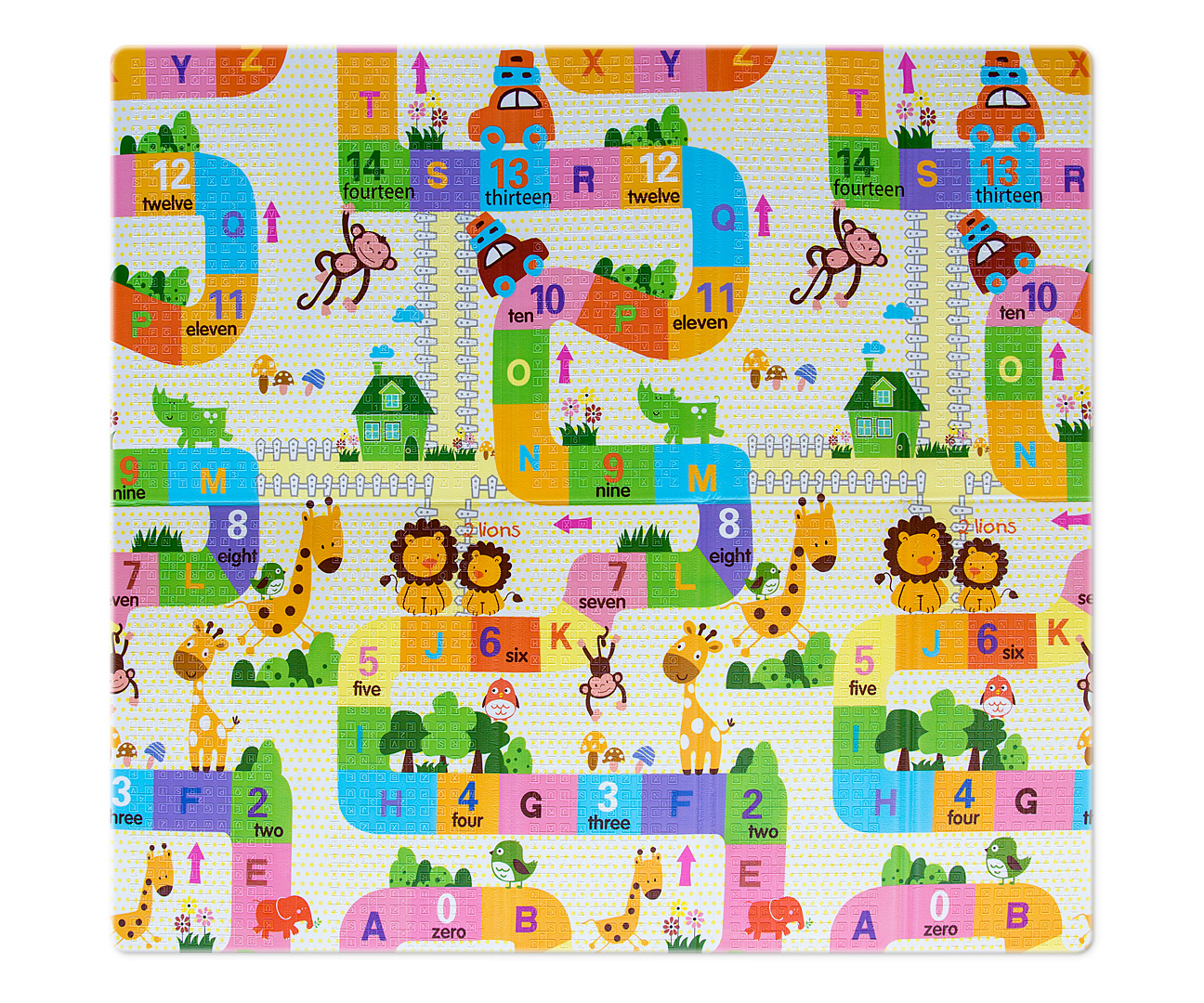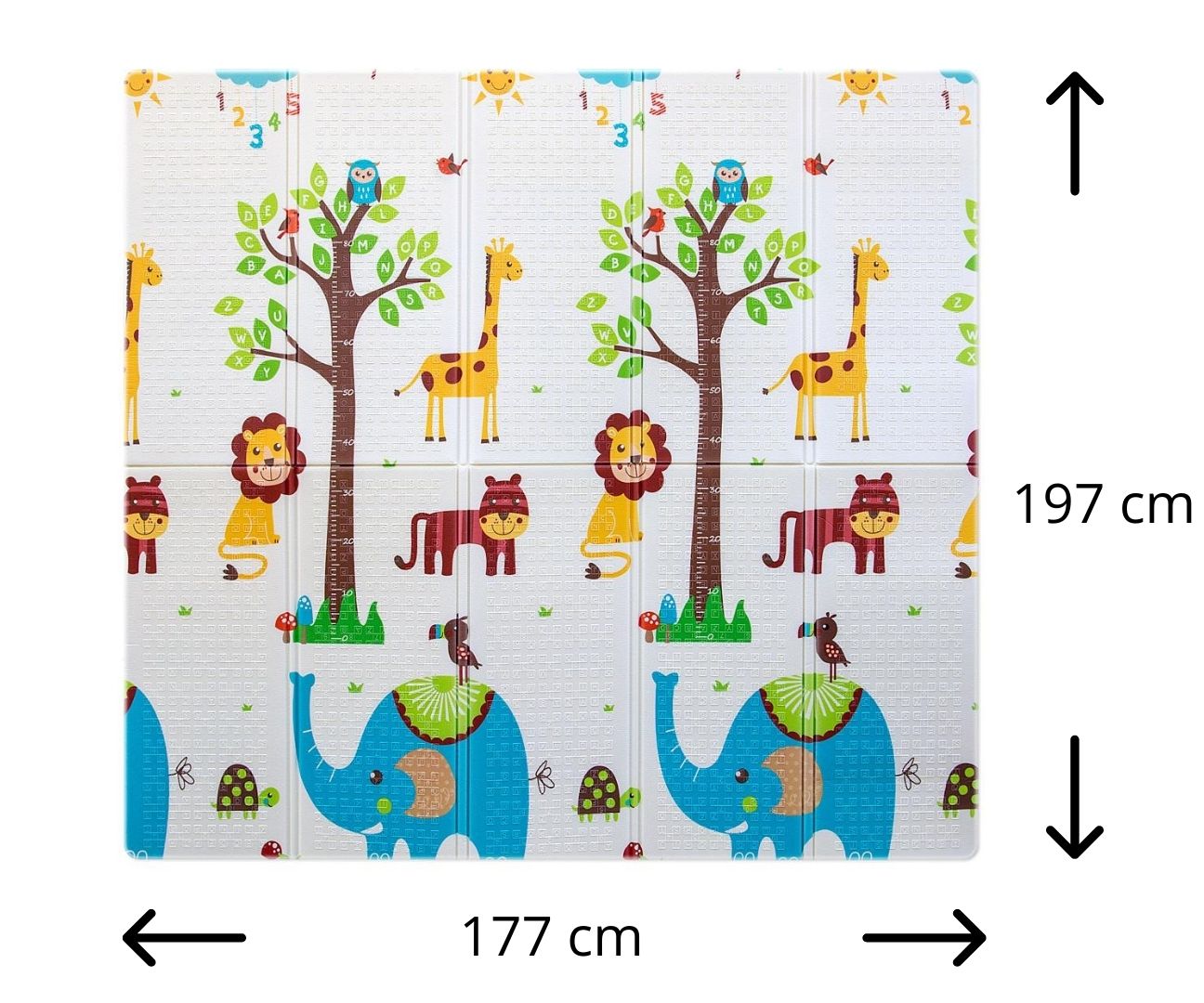 Milly Mally Mata piankowa składana Play Safari to dwustronna mata piankowa, która zapewnia komfort i bezpieczeństwo dziecka podczas zabawy, raczkowania i nauki chodzenia. Posiada właściwości antypoślizgowe i antyalergiczne, dzięki czemu jest bezpieczna w użytkowaniu. Unikatowy nadruk w motywy safari sprawia, że mata pasuje do każdego pokoju, zarówno dla chłopca, jak i dziewczynki. Doskonale izoluje od chłodnej podłogi, jest wodoodporna i łatwa w czyszczeniu. Duża elastyczność dobrze amortyzuje ewentualne upadki, a praktyczna torba z suwakiem umożliwia wygodne zabranie maty w podróż.