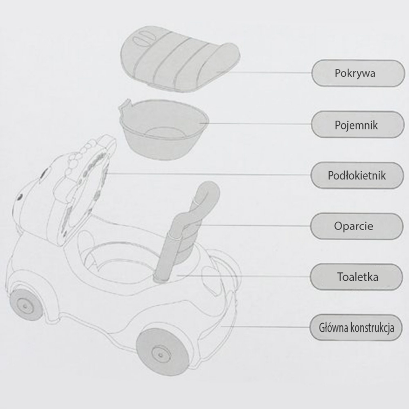 WOOPIE 47351 Chodzik jeździk nocnik 3w1 Osiołek to wszechstronna zabawka przeznaczona dla dzieci od 18 miesiąca życia, łącząca funkcje jeździka, pchacza i nocnika. Jako jeździk, zabawka wyposażona jest w stabilne oparcie, które wspiera malucha w nauce jazdy i samodzielności. Funkcja pchacza pomaga w stawianiu pierwszych kroków, poprawiając równowagę i koordynację. Nocnik z efektami dźwiękowymi i świetlnymi ułatwia proces zmiany pieluchy i zachęca dziecko do samodzielności w codziennych czynnościach.
